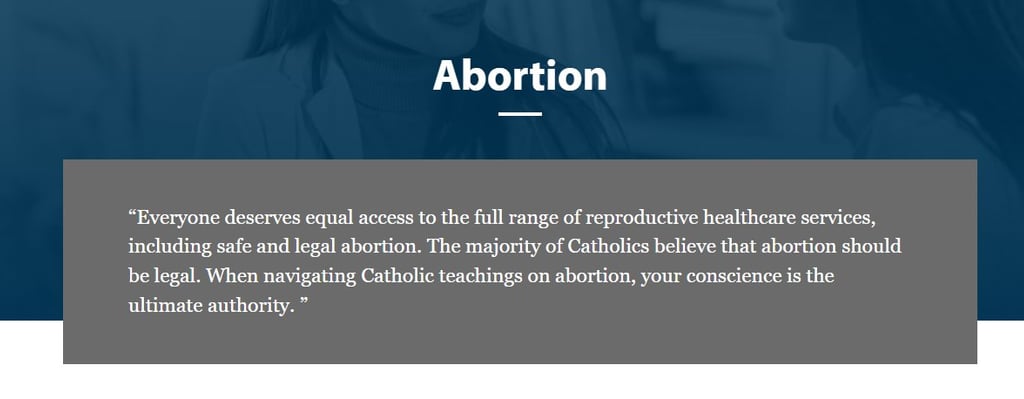 “Everyone deserves equal access to the full range of reproductive healthcare services, including safe and legal abortion. The majority of Catholics believe that abortion should be legal. When navigating Catholic teachings on abortion, your conscience is the ultimate authority.”