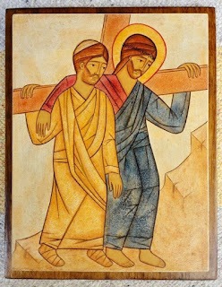 Back to the image of the cross being a yoke. A yoke is made for two. We never bear our cross or wear our yoke alone. As Simon helped Christ in his humanity bear the burden so Jesus now helps us in ours. With Jesus as our yokemate is there any burden that could be too heavy? When we stumble is he not there to balance the load. When we can no longer stand does he not put one arm around us and one around our cross and lift us up?